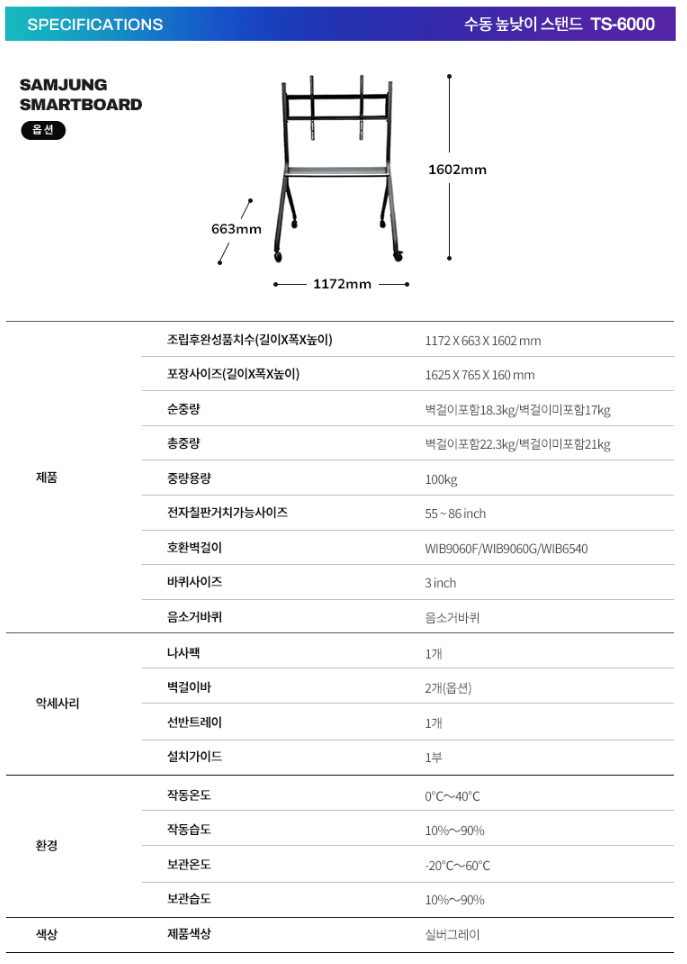 [삼정] 전자칠판 수동스탠드 TS-6000