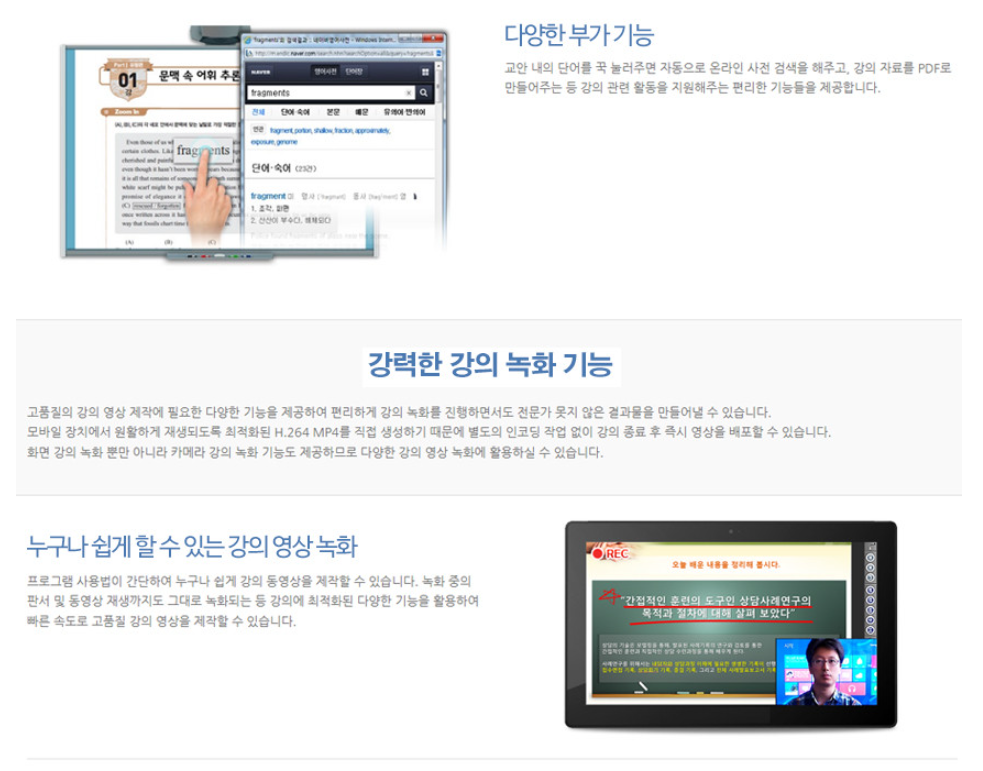 전자칠판 판서프로그램 닥줌 닥줌프로 닥줌플러스 학원용 학교용 사무용 녹화기능 스마트보드
