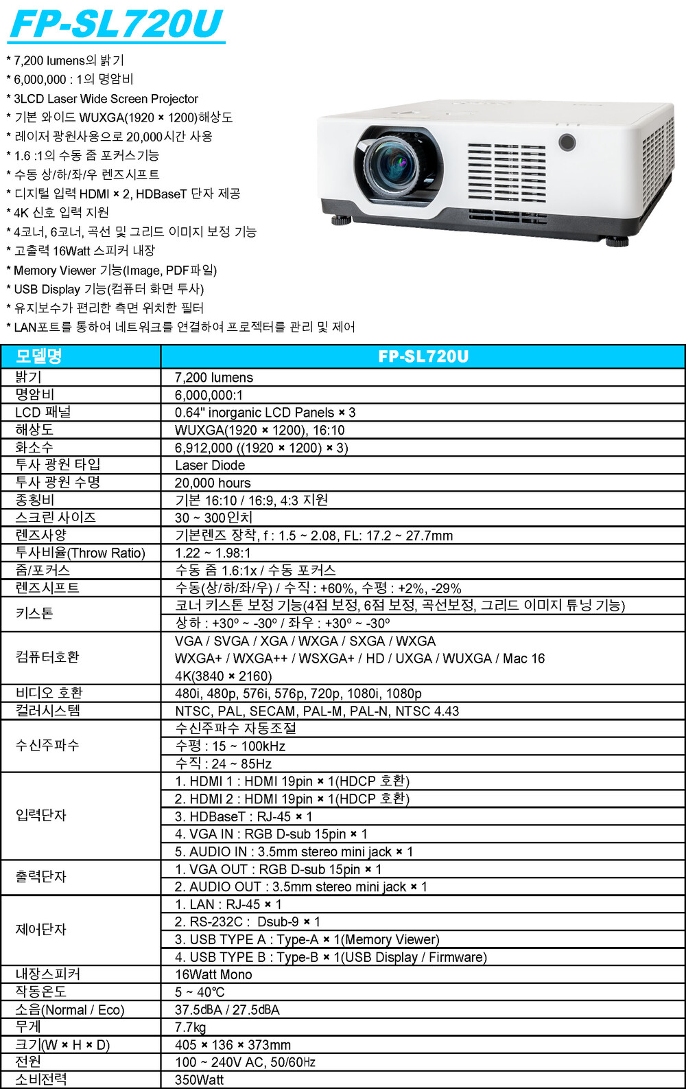 밝기 : 7,200 lumens