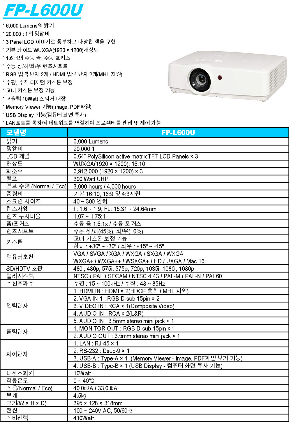 방식 : 3LCD Lamp