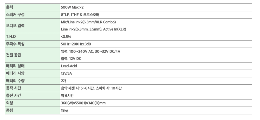 - 확장 스피커 동일 출력 유지(500W×2)